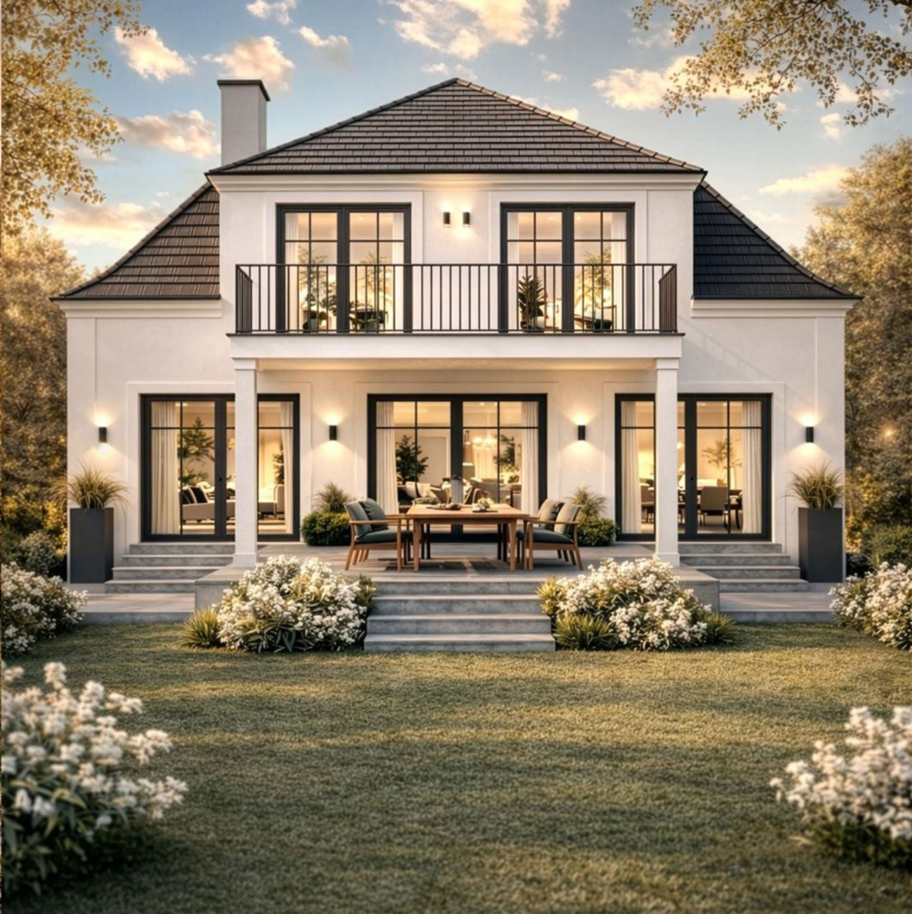 Elektrische Rollläden bieten zusätzlichen Komfort und Sicherheit. Die hochwertig ausgestatteten Design-Bäder unterstreichen den exklusiven Anspruch dieser Villa. Modernste Haustechnik garantiert zukunftsorientiertes und nachhaltiges Wohnen. Ein intelligentes KNX-BUS-System ermöglicht die komfortable Steuerung von Licht, Heizung, Beschattung und weiteren Funktionen, während eine Alarmanlage für ein hohes Maß an Sicherheit sorgt.